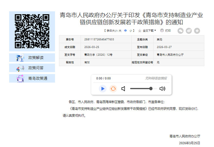 近日,青岛市人民政府办公厅印发《青岛市支持制造业产业链供应链创新发展若干政策措施》,推出16条具体举措十大股票杠杆排名,旨在提升当地“10+1”创新型产业体系产业链核心竞争力,构建大中小企业融通创新生态,该政策自发布之日起施行,有效期3年。